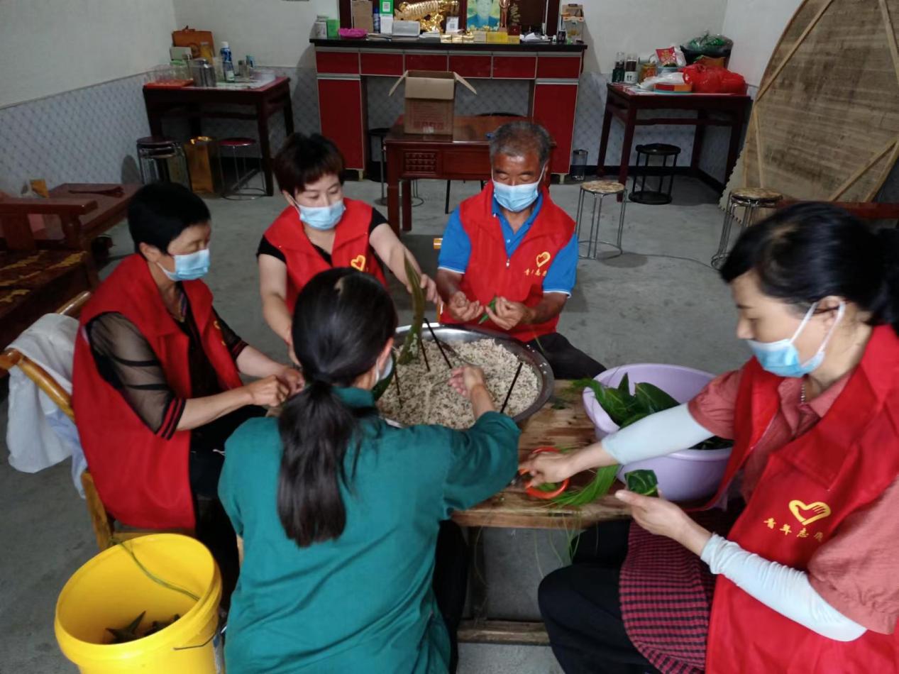 慰問前,集團駐村工作隊隊員和村干部驅車到塔畈鄉政府街道市場,采購包粽子用的優質糯米、綠豆、豬肉等原材料后,又步行到仙姑潭,采摘了天然野生的鮮粽葉和捆扎粽子的龍須草。精心準備好食材后,6月1日上午,工作隊隊員和部分村干及志愿者來到炳峰茶廠,在包粽子能手凌大姐的指導示范下學習包粽子、蒸粽子。下午,駐村工作隊和村兩委組成兩個慰問小組,深入18戶五保老人家,仔細詢問他們的身體狀況、家庭情況以及存在的困難訴求,為他們送去了剛蒸好的熱粽子、綠豆糕、牛奶等慰問品。