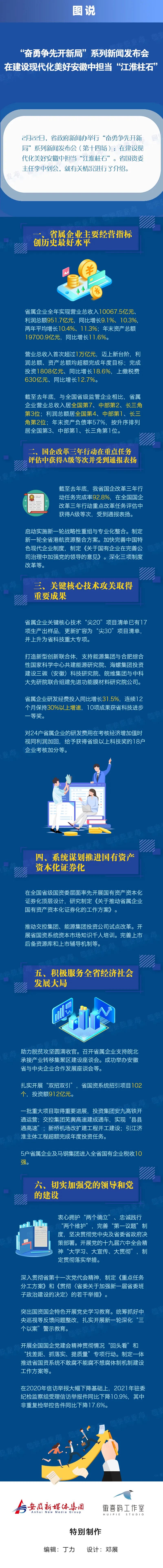 2月22日(周二)下午3點(diǎn),省政府新聞辦召開 “奮勇爭先開新局”系列新聞發(fā)布會(huì)(第十四場):在建設(shè)現(xiàn)代化美好安徽中擔(dān)當(dāng)“江淮柱石”,省國資委主任李中出席發(fā)布會(huì),介紹省國資國企高質(zhì)量發(fā)展的情況,并回答記者提問。省委宣傳部新聞發(fā)布處處長汪曄宇主持新聞發(fā)布會(huì)。